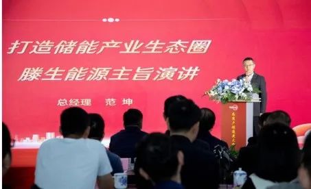 天翔集團副總經(jīng)理、滕生能源總經(jīng)理范坤發(fā)表打造儲能產(chǎn)業(yè)生態(tài)圈的主旨演講,全面介紹滕生能源商業(yè)模式、產(chǎn)品、產(chǎn)線(xiàn)和發(fā)展規劃。